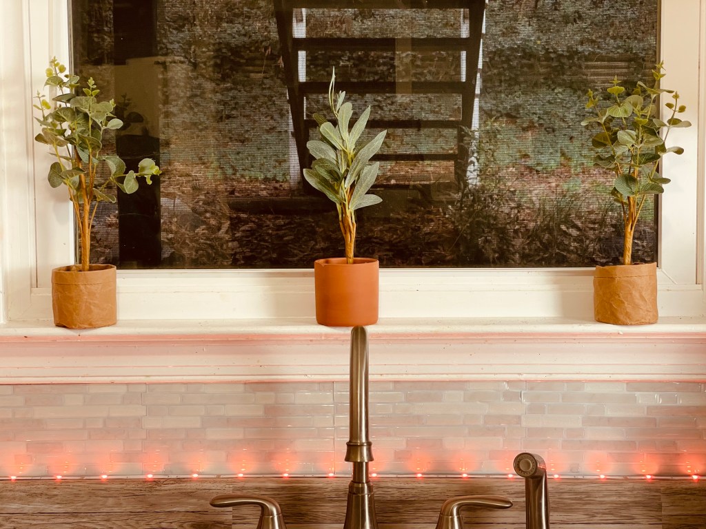 We got these three Faux house plants from Target for like $3 each and that add the perfect touch of greenery. We also used some LED lights that we already had that we purchased from Amazon here