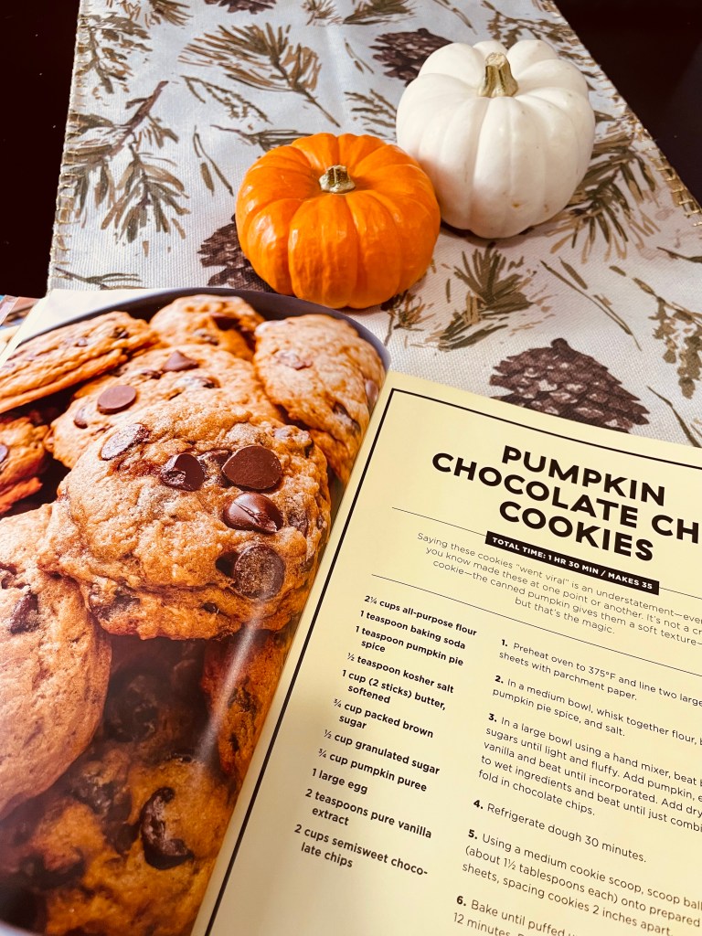 A little while ago I purchased this great dessert recipe book (Delish Insane Sweets by JoAnna Saltz & The Editors of Delish) from Target and I’m determined to try every recipe in the book. This past week Noble and I baked Chocolate Chip Pumpkin Cookies and they were so delicious and easily one of my new favorite Fall treats.